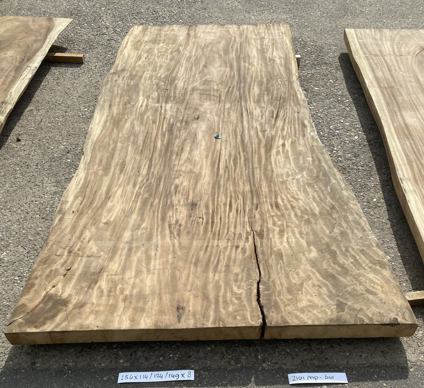 Dit tafelblad is voorzien van twee stalen pinnen tegen het krom trekken van het blad. Het blad is volledig uit één deel (plak van een boom). Hierdoor heeft het blad echt de natuurlijke uitstraling. Het blad op de foto is nog onbehandeld en opgeschuurd. Wanneer het blad geschuurd en behandeld wordt krijgt u nog mooier de tekeningen van het hout te zien. Al onze suar tafelbladen zijn te bezichtigen in onze showroom, zo weet u precies wat u kunt verwachten van het blad. Wij adviseren u dan ook om wanneer deze mogelijkheid er is langs te komen in onze showroom. Voor openingstijden en adres kunt u hier terecht.