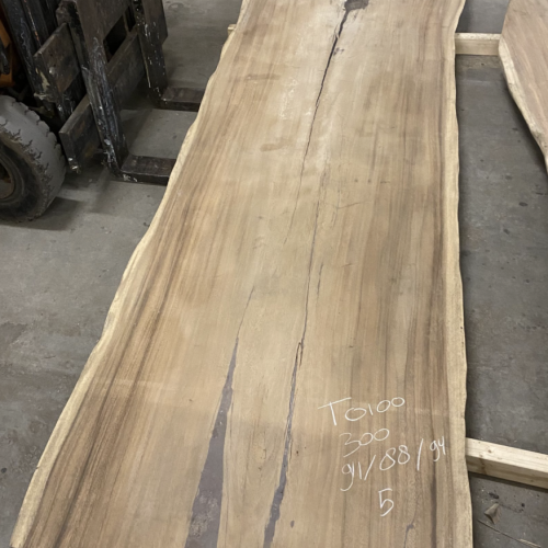 Het blad is volledig uit één stuk hout vervaardigd (een plak van de boom), wat zorgt voor een authentieke, natuurlijke uitstraling. Het blad op de foto is nog onbehandeld. Na het schuren en behandelen komen de unieke houttekeningen nog mooier naar voren, waardoor het blad nóg meer tot leven komt.