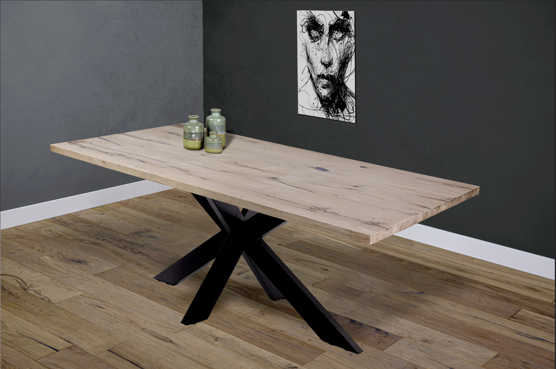 - Robuuste tafel met poot en olie/lak box