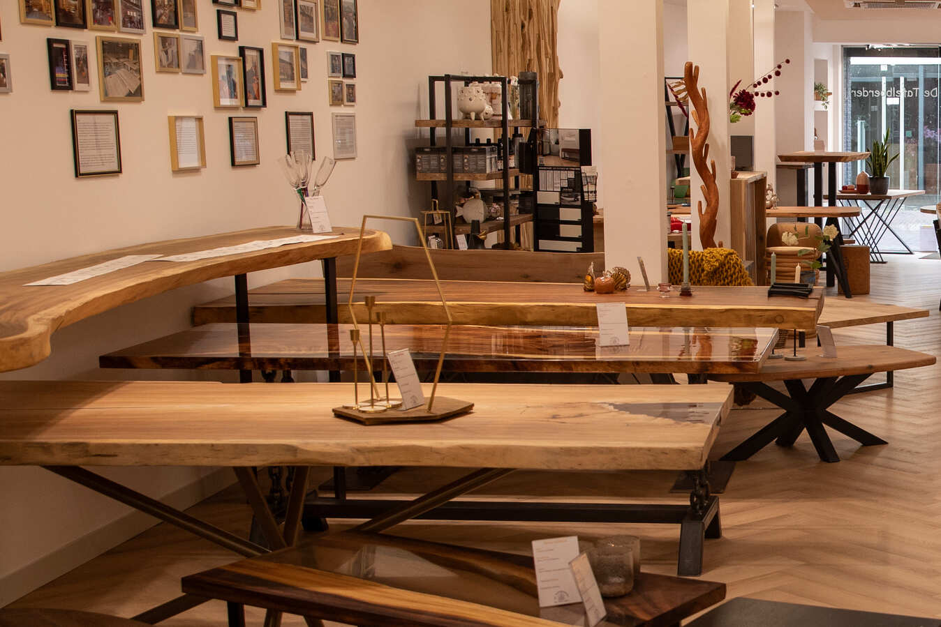 Sinds augustus 2025 beschikken wij over een prachtige nieuwe showroom waar u uw eettafel volledig naar wens kunt samenstellen. Doordat wij alle tafelbladen in grote aantallen op voorraad hebben in onze werkplaats en ons magazijn, kunt u aan de hand van foto’s zelf uw ideale tafelblad uitkiezen. Zo weet u vooraf precies wat u kunt verwachten bij levering.