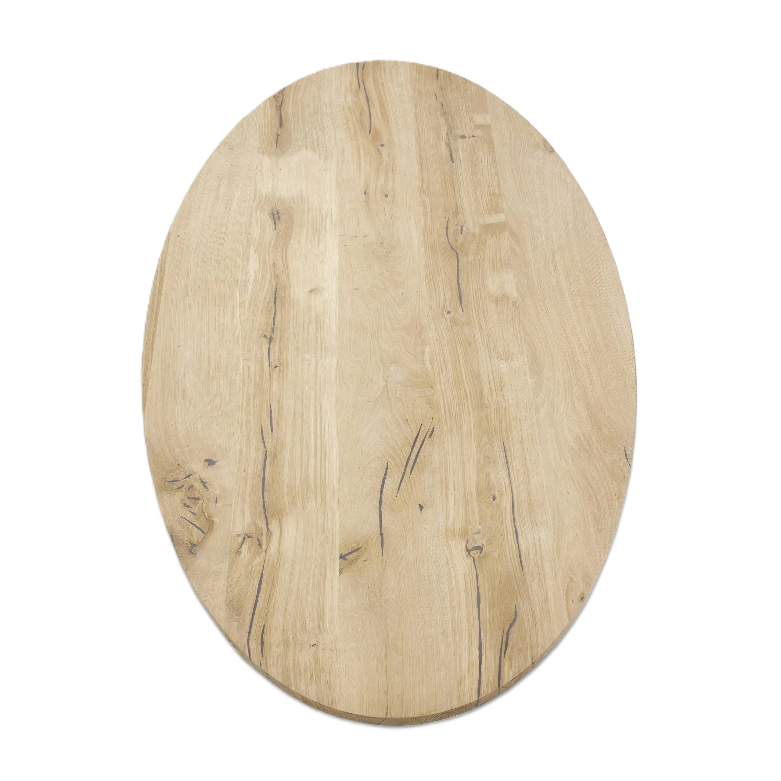 De vorm van een tafel heeft grote invloed op de sfeer in uw ruimte. Kiest u voor rond en speels, strak en recht of juist een blad met natuurlijke lijnen? Alle tafelbladen zijn verkrijgbaar in natuurlijk, massief eiken en massief grof eikenhout.