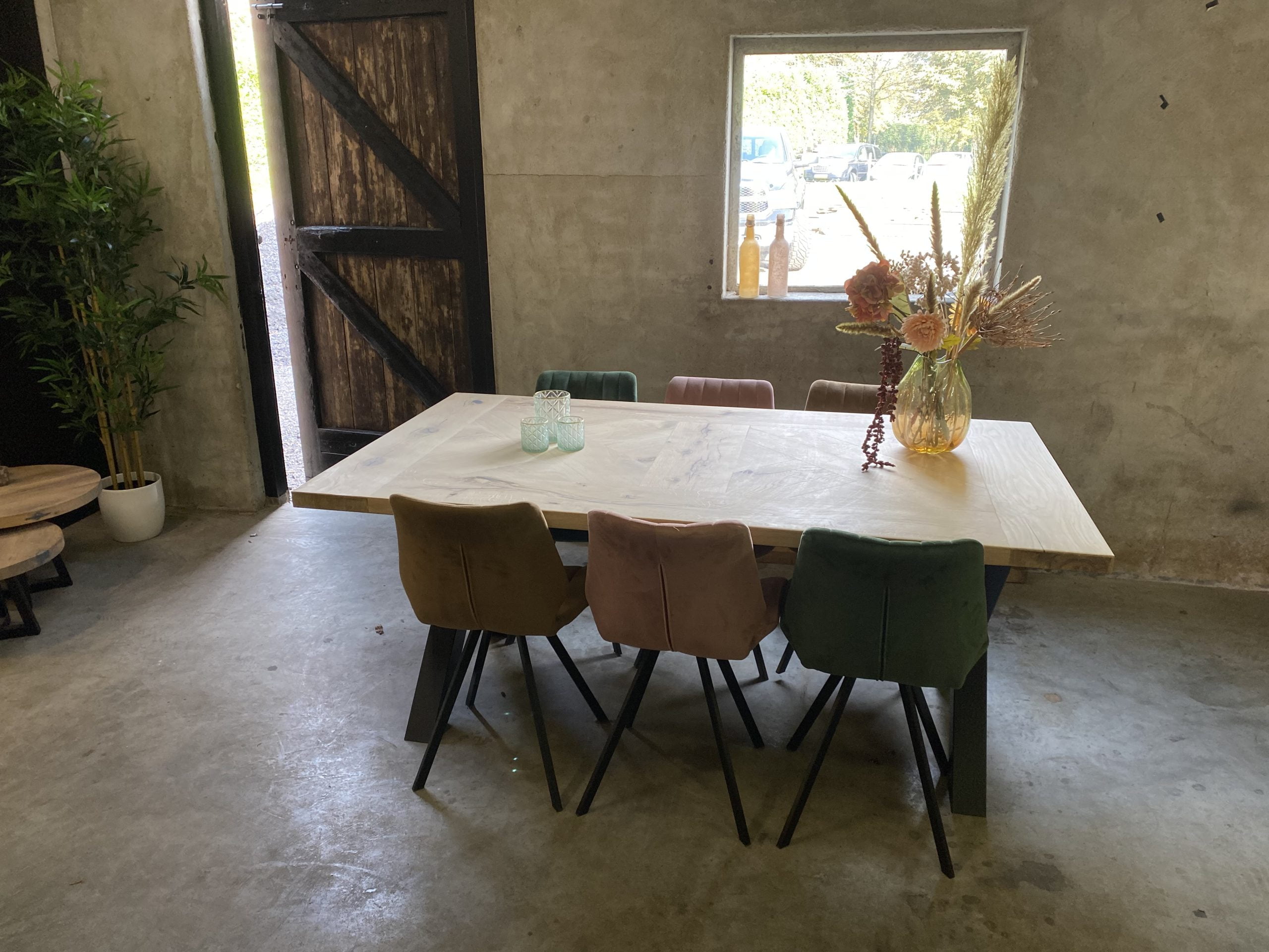 De maten tot en met 220cm lang bestaan over de lengte uit hele lengtes. Vanaf 240 cm kunnen de bladen over de lengte deelnaden krijgen. Bij ons in de showroom hebben wij altijd meerdere tafelblad op voorraad staan. U kunt hier u eigen blad uitzoeken. Zo weet u altijd welk blad u kunt verwacht.
