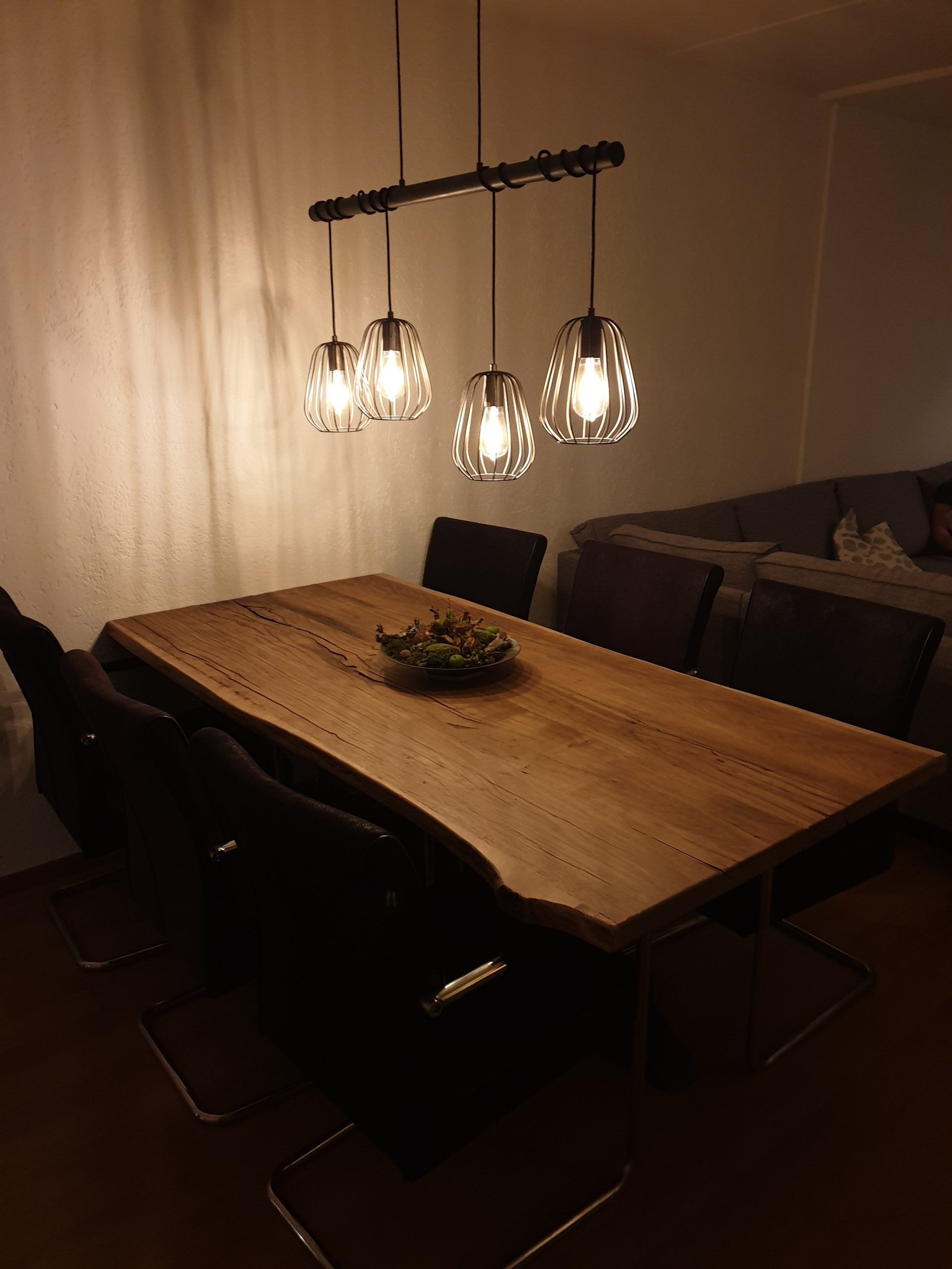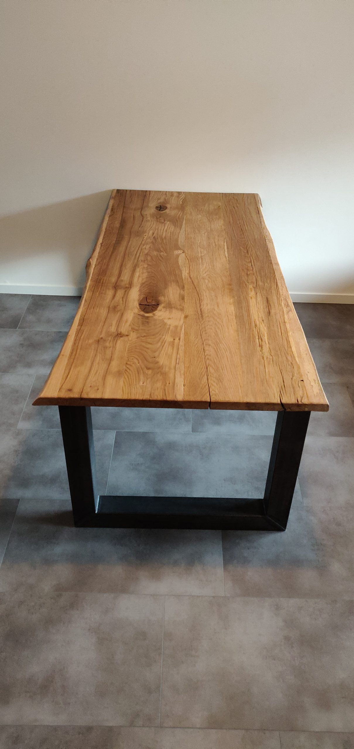 Grof Eiken Boomstam Tafelblad combineren met Stalen Poten
