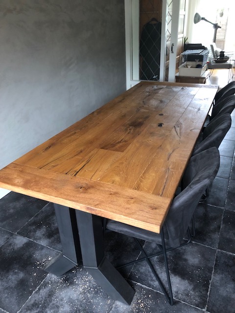 Verder kunnen wij de eiken boomstam tafelblad zwart lakken. Wij brengen dan 4 verschillende lagen lak/verf aan om uw tafel een perfect dekkend zwarte kleur te geven. Kijk hier voor voorbeelden.