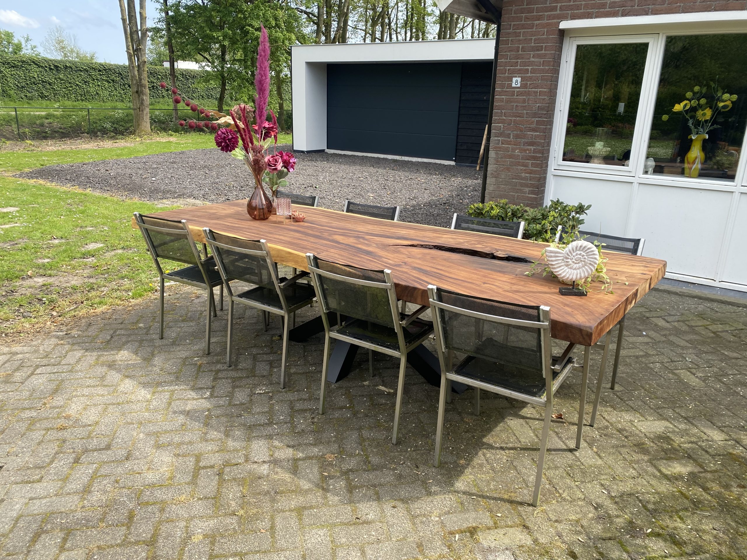 Wij hebben in september een prachtige 3,5 meter lange suar boomstamtafel gekocht. Hadden alleen niet goed op de website gekeken en dachten dat we in de winkel in het centrum ook de tafels konden bezichtigen. De vriendelijke dame in de winkel heeft gelijk met Sanne van de werkplaats gebeld, als we meteen naar de werkplaats konden komen, dan zouden er een aantal tafelbladen voor ons uitgestald worden. Echt ontzettend bij met deze service, aangezien wij niet uit de buurt kwamen. Na 3 weken kwam onze prachtige tafel aan! Ontzettend blij met onze aankoop!
