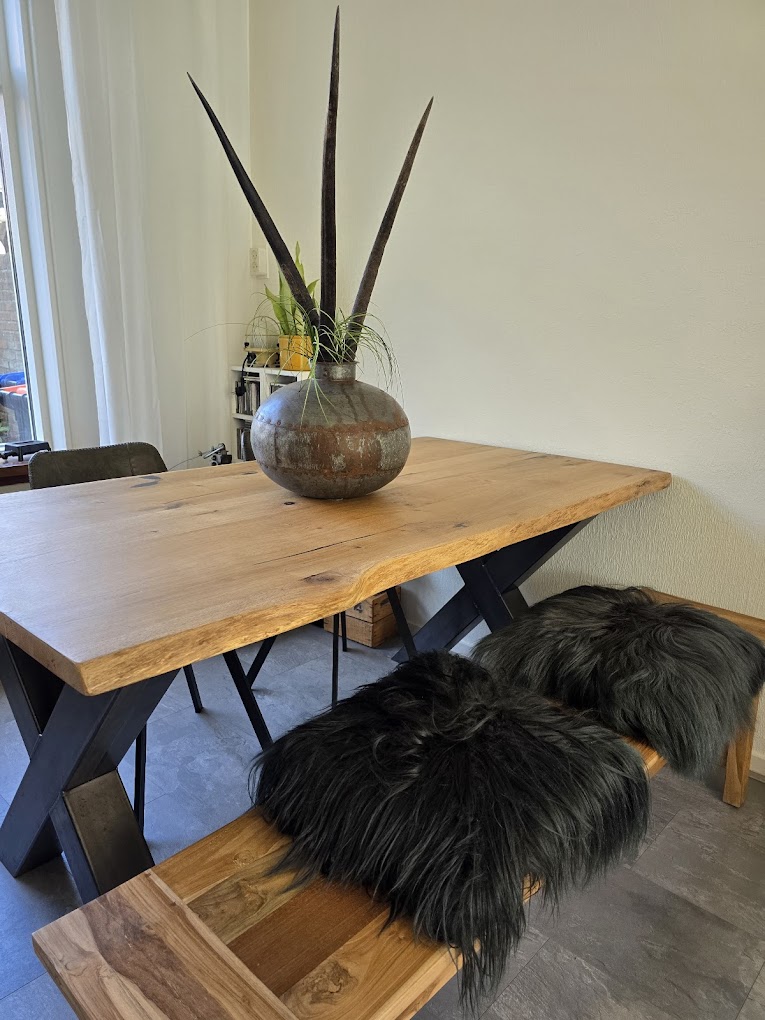 We hebben een prachtige tafel ontvangen. We konden zelf het hout van het tafelblad uitzoeken waardoor je een uniek exemplaar hebt! Erg leuk!